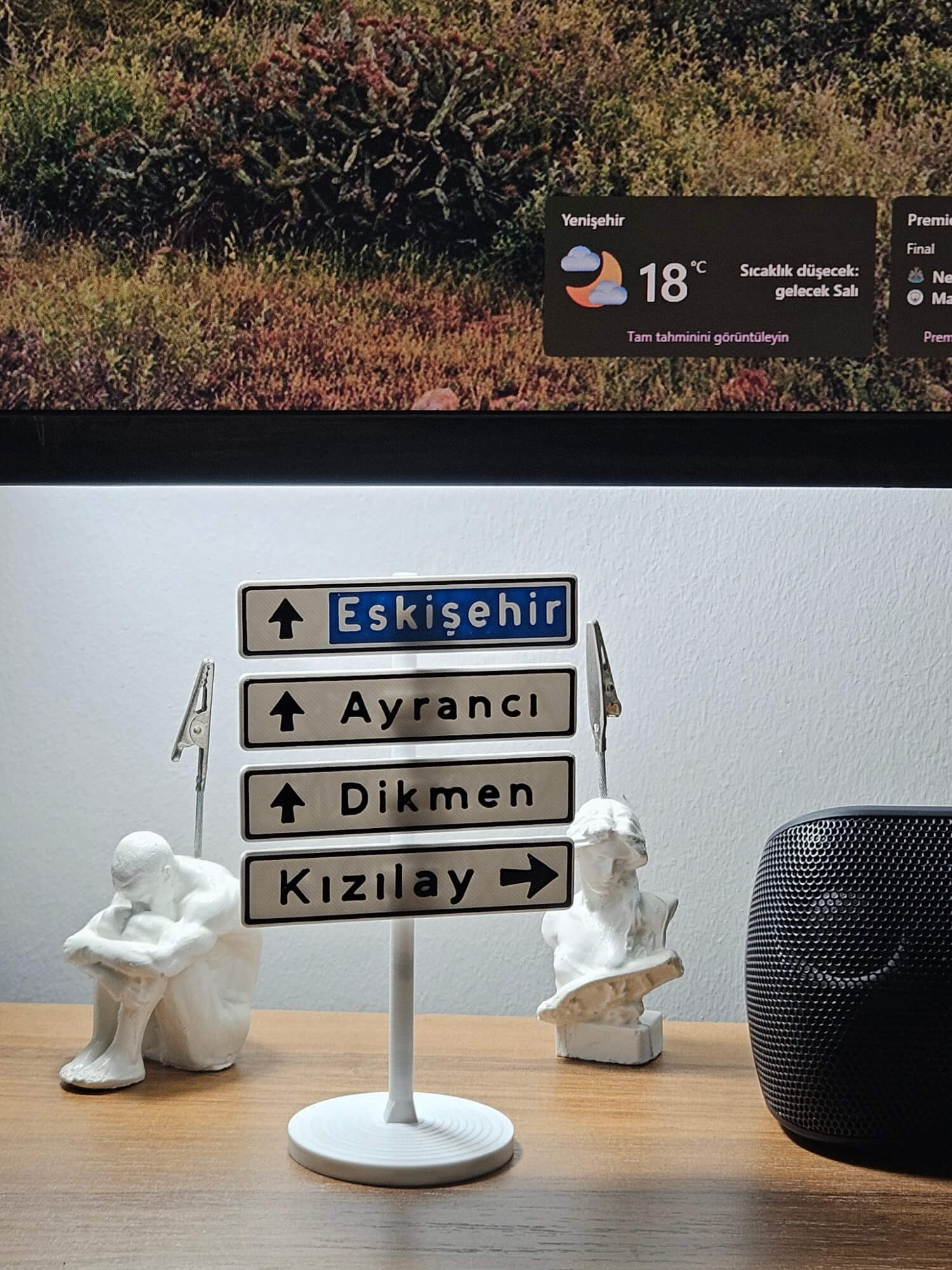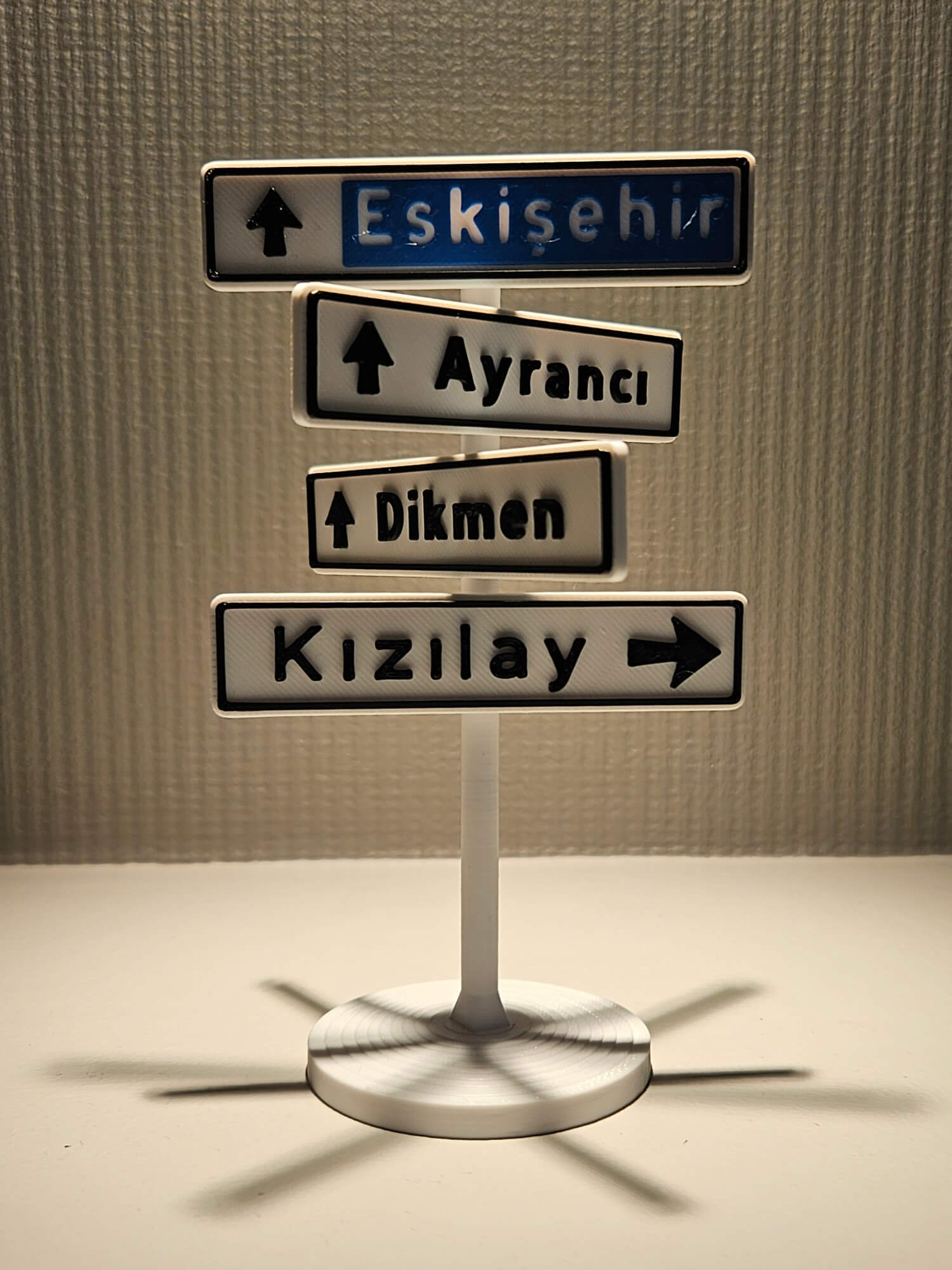 Kennedy Caddesi’nde fotoğraf çektirmek için saatlerce sıra beklemenize gerek kalmadı. Ankara’nın simgesi haline gelen ve sosyal medyada viral olan meşhur yön tabelası, şimdi özel tasarım 3D baskı teknolojisiyle masanızı süslemeye geliyor.
