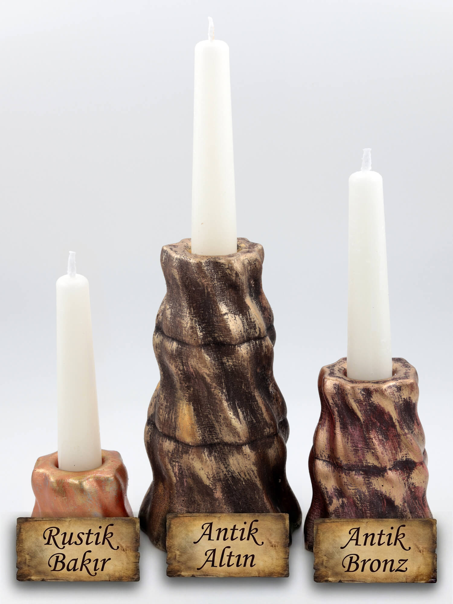 Dekoratif 3’lü Eskitme Şamdan Mumluk Seti (Seçenekli)