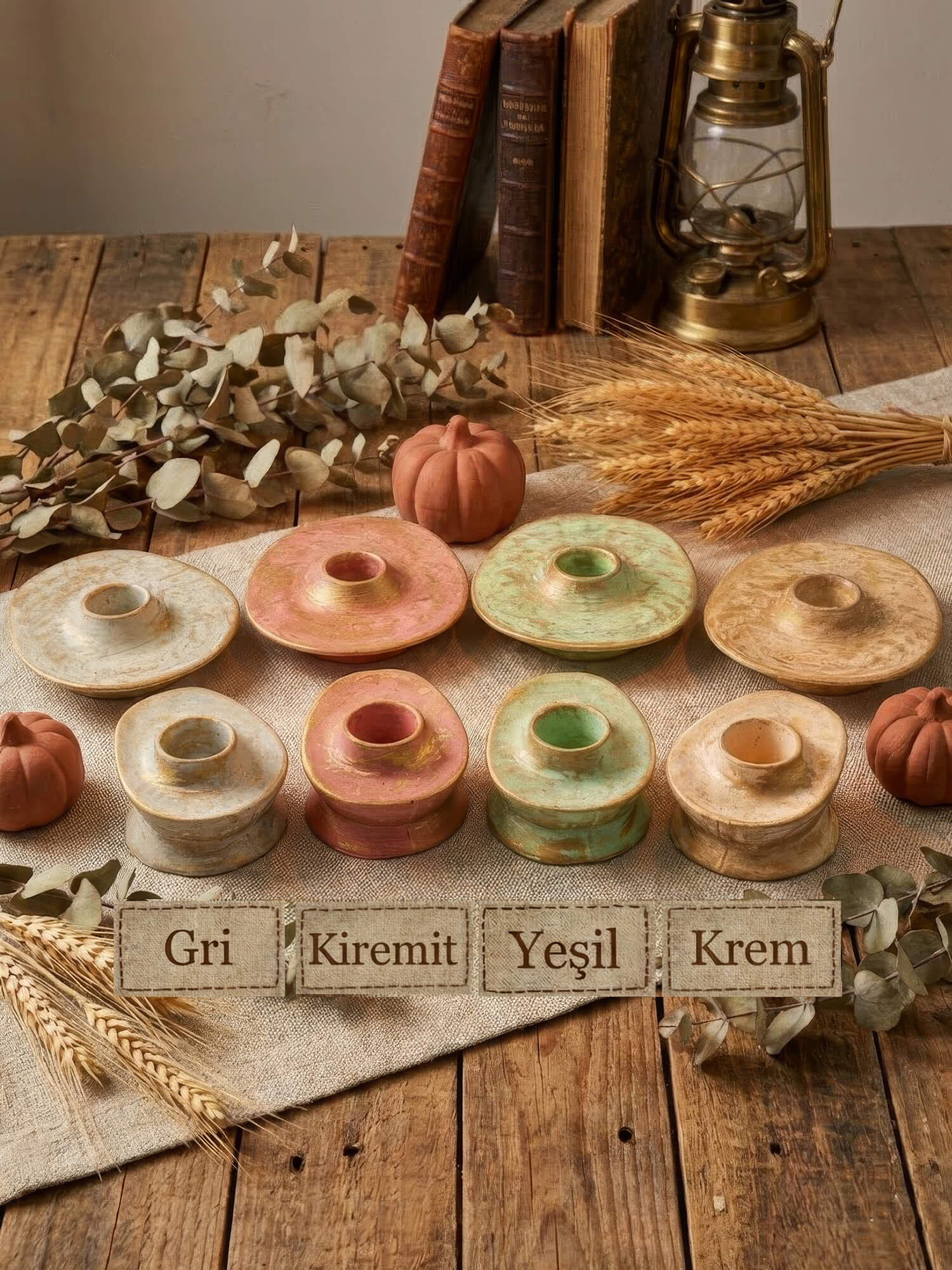 Minimalist, İskandinav ve modern dekorasyon stilleriyle kusursuz bir uyum sağlayan bu set; orta sehpa, çalışma masası, konsol veya kitaplık raflarında şık bir odak noktası oluşturur. Standart mum ölçüleriyle (2.2 cm çap) tam uyumlu yuvası sayesinde kullanımı oldukça pratiktir.