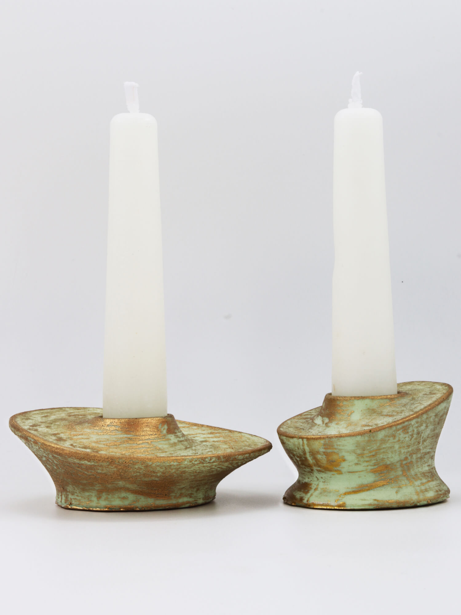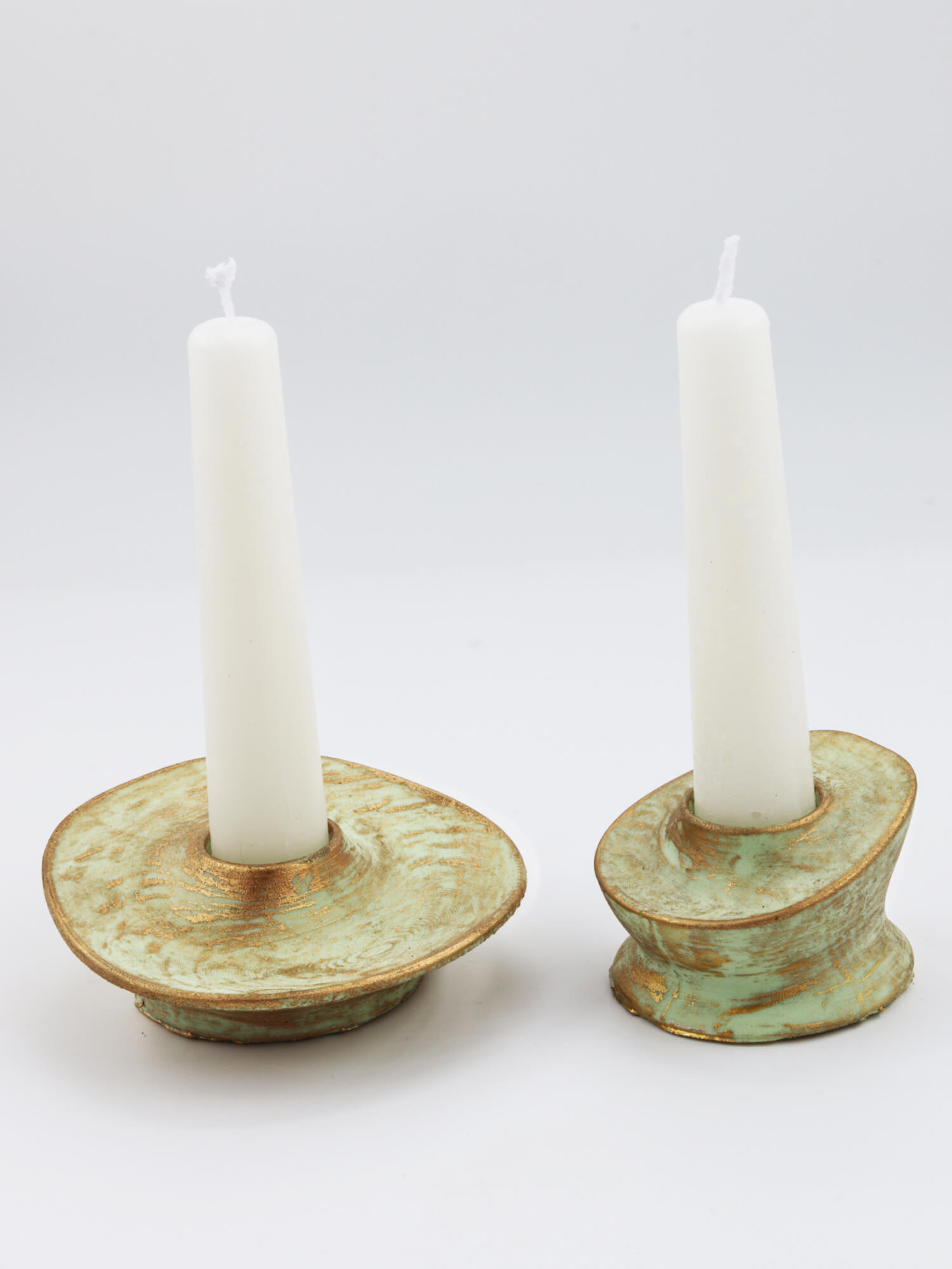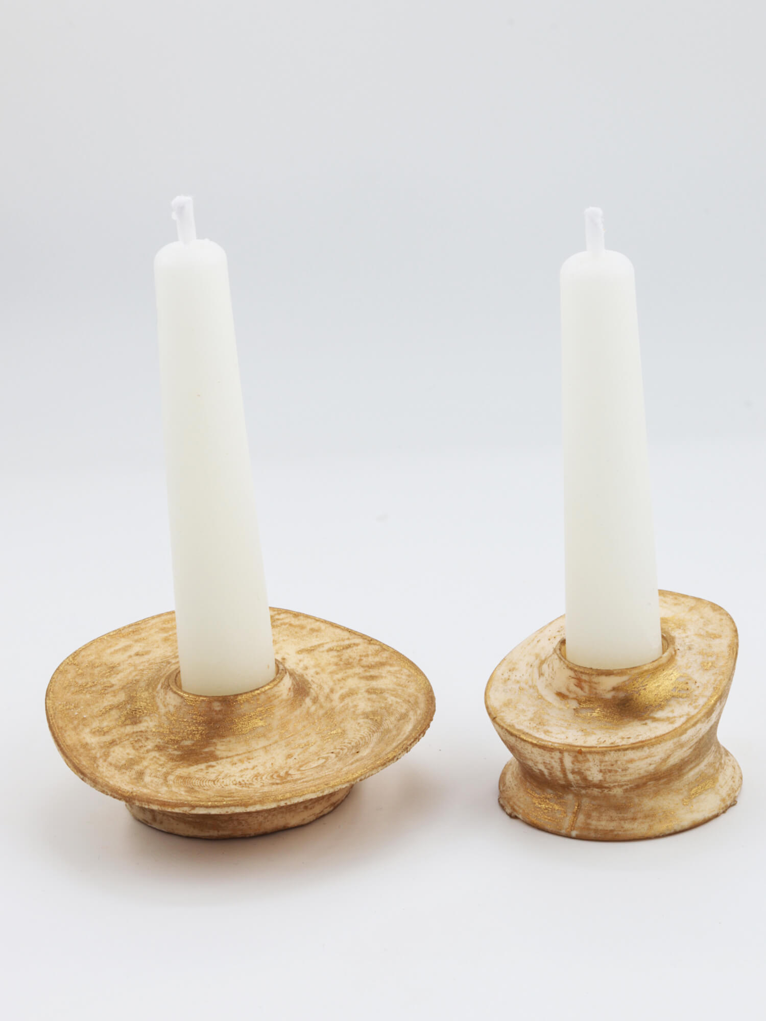 Yaldızlı Gestalt 2’li Şamdan Mumluk + 2 Adet Mum (Seçenekli)