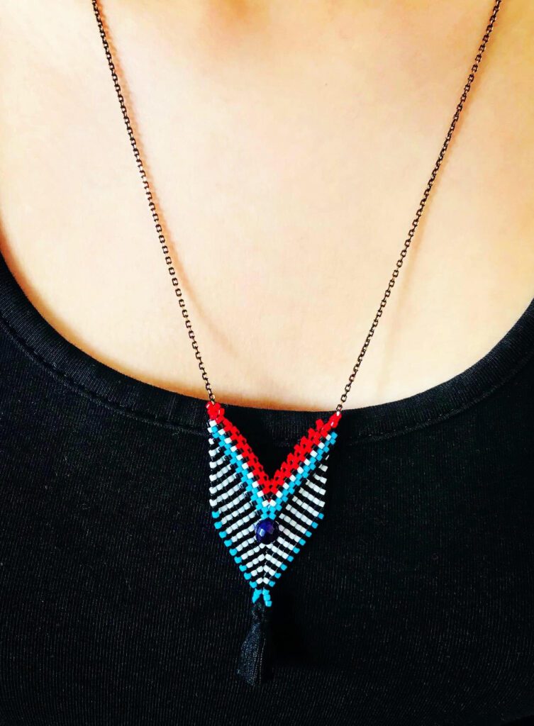 Orjinal miyuki boncuklarla elde işlenerek yapılmıştır.