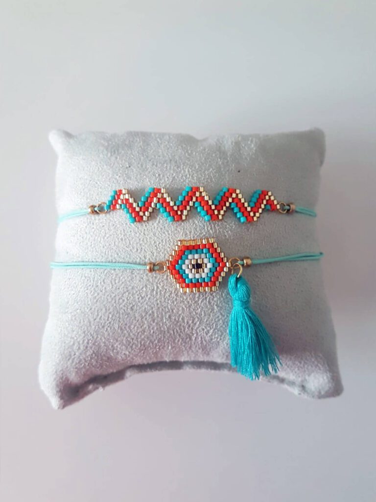 Renkli miyuki boncuklarla elde iğne ile işlenmiştir.