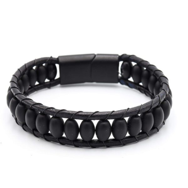 Mat Oniks Taşlı Deri Erkek Bileklik
