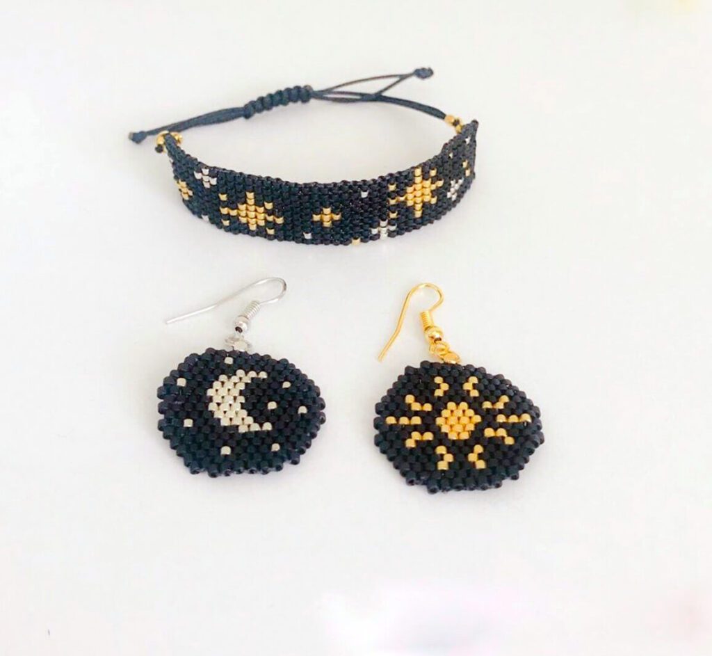 Siyah Kırmızı uyumlu kombinimiz orjinal miyuki boncuklarla işlenmiştir.