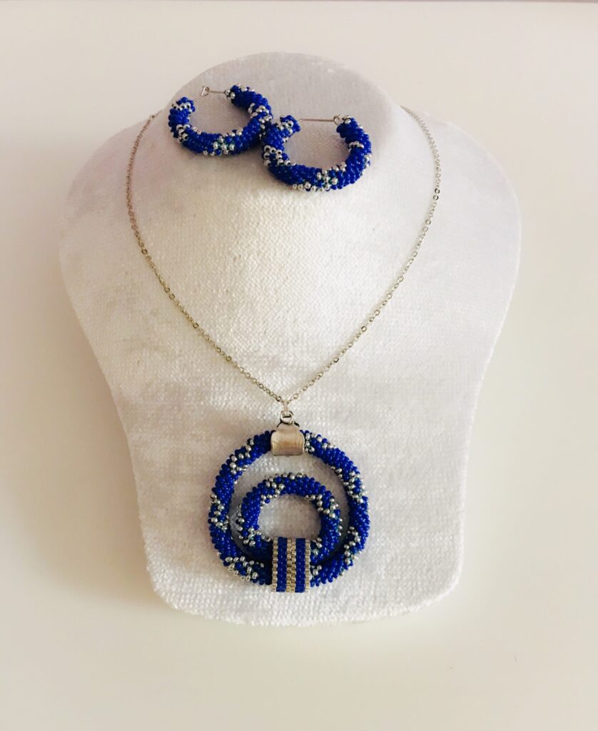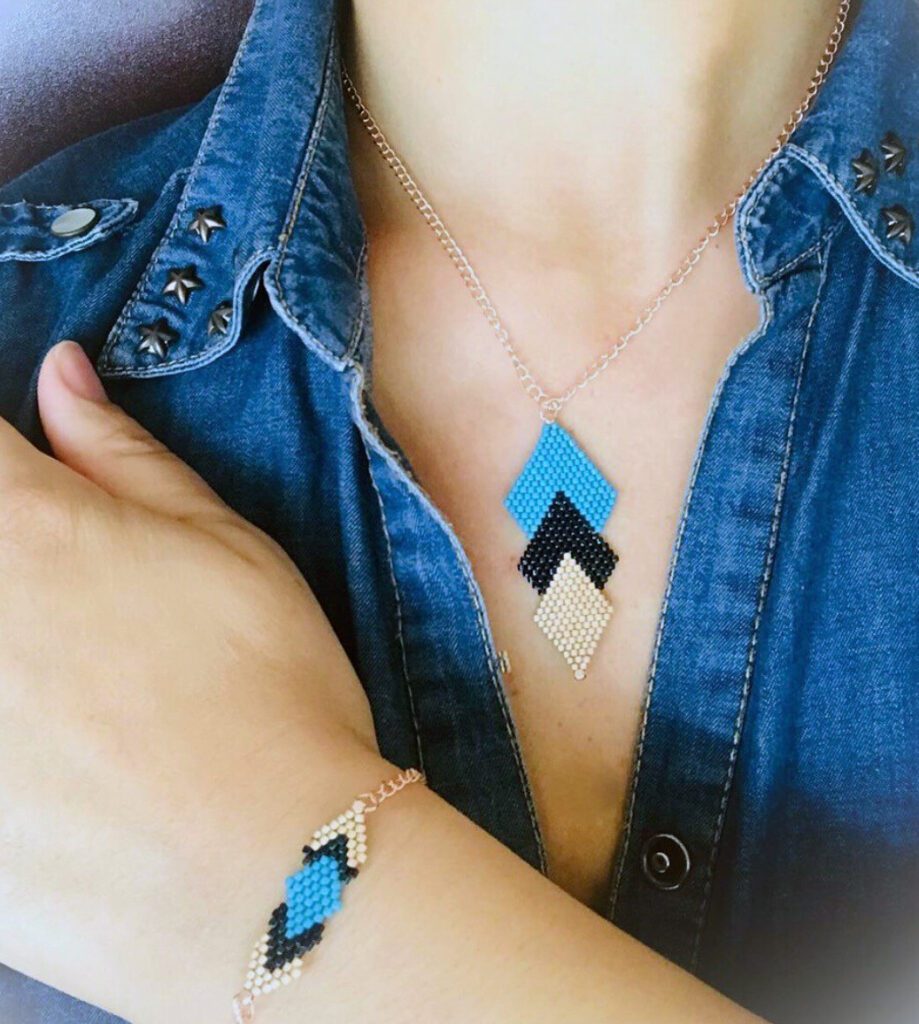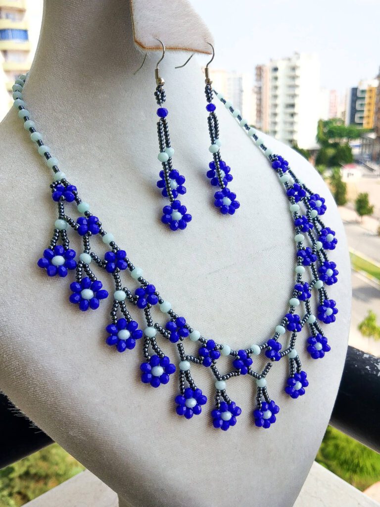 Mavi Hapishane İşi Takı Seti (Kolye ve Bileklik)